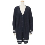 片畔編みVネックロングカーディガン