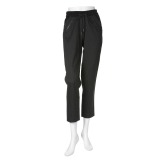 モード感が香るストライプ柄のアンクルパンツです。ウエストは総ゴム仕様なので快適なはき心地です。きちんと感のあるシルエットに仕上がっているのでレッグラインをきれいに見せてくれます。