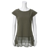 綿麻の天竺素材をベースに使用し、裾部分をチュールで切り替えたキャップスリーブプルオーバーです。■身頃:綿と麻の天竺素材をベースに使用し、清涼感ある見た目に仕上げました。