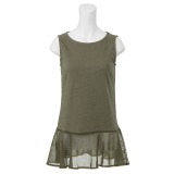 綿麻の肌触りの良い素材をベースに使用し、裾部分をチュールで切り替えた、ノースリーブプルオーバーです。