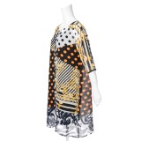 ミント ミント ミント楊流プリーツプリントデザイン七分袖ワンピース