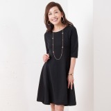 ボン・サンスダンボールニット七分袖フレアーワンピース
