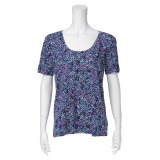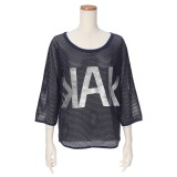 アキコ カワダメッシュ箔プリント七分袖プルオーバー