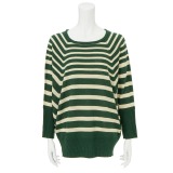 ボーダー柄ラグランスリーブビッグシルエットニットプルオーバー