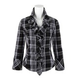 ナラカミーチェチェック柄長袖フリルチュニックシャツ