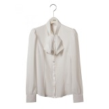 とろみのある素材が極上の女性らしさを感じさせる長袖ブラウスです。首元にたっぷりとフリルをほどこし、ラグジュアリーかつフェミニンな雰囲気に仕上げました。