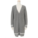 片畔編みVネックロングカーディガン