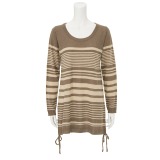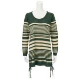 ピッチが細かいマルチボーダーニット生地の脇部分にドローストリングがほどこされたチュニックプルオーバーです。