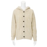 裏ボア素材が暖かい5ゲージのケーブル編みフード付きカーディガンです。前開きデザインなので羽織りやすく、寒い時期におすすめのアイテムです。