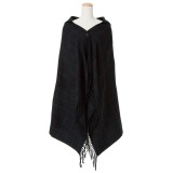 着回しのしやすいチェック柄がおしゃれなフード付きポンチョです。軽やかで柔らかな肌触りも魅力。裾はフリンジデザインになっており、ポイントになっています。