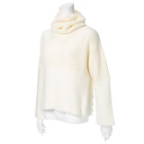 ミューリエ共布スヌード付異素材使い長袖プルオーバー
