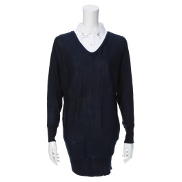 ■身頃:前後着用が可能なプルオーバーと付け襟のセットで、幅広い着こなしが楽しめます。ハイゲージに編み立てた素材を使用しており、光沢感が上品な印象を演出。