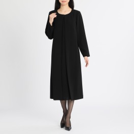 セルニーナ ブラックフォーマル プリーツアクセント アンサンブル風 前開きワンピース