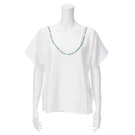 ●SHOP先行販売(先行販売)■身頃:襟元左右にあしらった丸カンにターコイズカラーのネックレスをお好みで留めて着用できます。