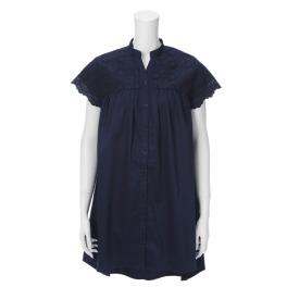 ■身頃:自然な光沢感のある、綿サテン生地と涼やかなレース素材を使用。襟はスタンドカラーにし、首元がすっきり見えるように、スキッパー風に仕上げました。