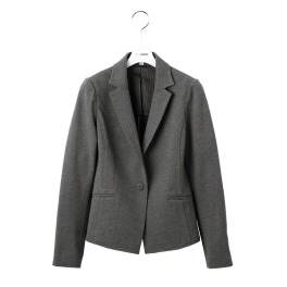 ミラノリブの編地を使用したテーラードジャケットです。やや肉厚な生地でありながら、ストレッチ性があるため快適な着心地。