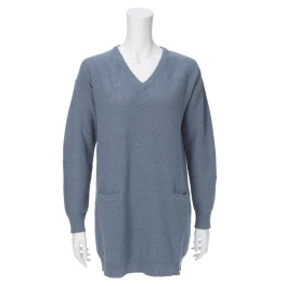 イタリア糸Vネック長袖ロングプルオーバー