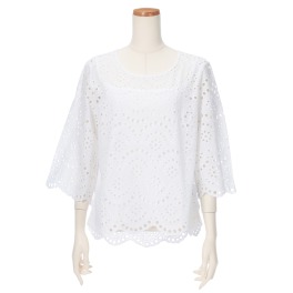 フーアコットンボイルアイレット刺しゅう七分袖ブラウス