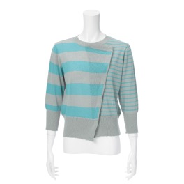 ■身頃:当ブランドで人気の、立体的なローズモティーフをほどこしたデザイン。ぷっくりとした立体感がかわいらしいローズモティーフを表現するために、天竺の編地の表側と裏側で編目の数を変え、糸の調子を整えな…