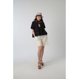 ■身頃:フリルがあらかじめ編み込まれたストレッチレースを使用。フリルとフリルの間には、ふわっと膨らみのある花柄が2段編み込まれています。