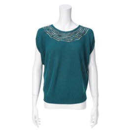 ■身頃:前後着用が可能なプルオーバーと付け襟のセットで、幅広い着こなしが楽しめます。ハイゲージに編み立てた素材を使用しており、光沢感が上品な印象を演出。