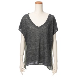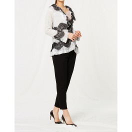 アキコ カワダフェイクレザー&シフォンコンビネーションジレ
