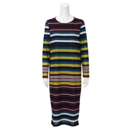 マルチボーダー柄のクルーネックワンピースです。ストレッチ性のあるさらりとした肌触りの素材で、快適な着心地。