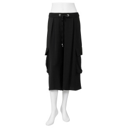 ストレッチジャージーを使用した、さらっとした肌触りで肌離れの良いカーゴキュロットパンツです。ドローコード付き。