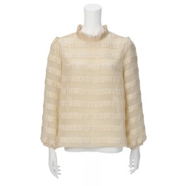 マンゴ刺しゅう&レースアクセント長袖ブラウス