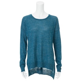 マンゴ麻混メランジニットバックボタンアクセントプルオーバー