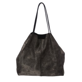 ■外側:箔押し加工をほどこした牛床革を使用。開口部分は断ち切りで仕上げており、牛床革本来の持つ柔らかさを引き立たせます。