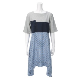 アイチョイス配色ステッチアクセント八分袖ワンピース