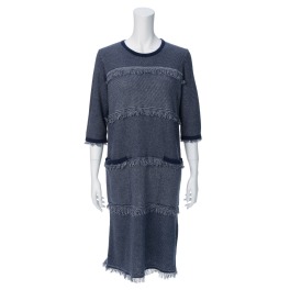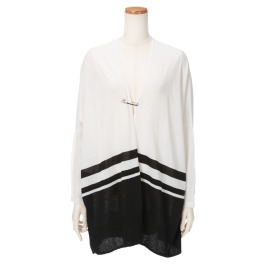 ジャガードでツイル調の編み地を表現。フリンジがさりげないアクセントになっています。■身頃:布帛のようなツイル柄を表現するために、ダブルジャガード編みで作製。