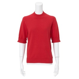 首元をすっきりと見せるややハイネックの五分袖のニットプルオーバーです。イタリアの名だたるメーカーのコットンヤーンの請負生産を主とする信頼の高い紡績メーカー“MTB社(MANIFATTURE TESS…
