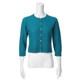プールトレファムイタリアンヤーンエクストラファインメリノウール&シルクケーブル柄カーディガン