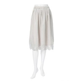 プールトレファムリネン刺しゅうアクセントフレアースカート