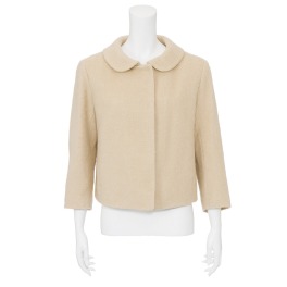 当ブランドらしい小さめな襟とコンパクトなシルエットがポイントのジャケットです。大きめのヘリンボーン柄の生地に毛足を出す加工をほどこし、もこもこ感あふれる表情に仕上げました。