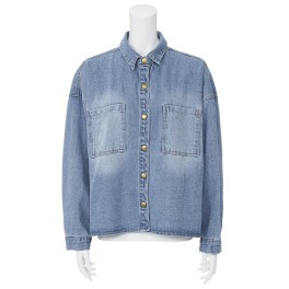 デニム素材を使用したビッグシルエットのブラウスジャケットです。ブリーチ部分にオーバーダイ加工をほどこし、ヴィンテージ感をプラス。