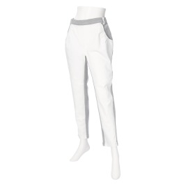 ●SHOPオリジナルサイズ:L、LL■身頃:オフホワイトのコットンのチノクロス素材と、グレーの裏毛ジャージー素材をコンビネーションで使用した、八分丈のテーパードパンツです。