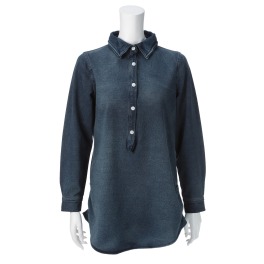 ジョリーフェムストレッチデニムシャツカラーチュニックプルオーバー
