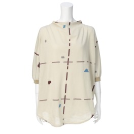 ■身頃:綿100%の生地にサボテンやフラワーなどのプリントをほどこしました。刺しゅうやカラフルなビーズなどをあしらい、小さなボタンやハート型のカラフルビーズがさりげないアクセントになっています。