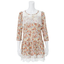 ジン・カトーレースアクセントフラワープリントチュニックワンピース