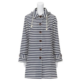 定番のボーダー柄がデザインされたレインコートです。はっ水加工をほどこした生地を使用しており、レインコートとしてはもちろん、防寒具としてもお使いいただけます。