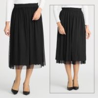 チュール素材がエレガントな印象のフレアースカートです。チュールを2枚重ねて仕上げることで、陰影が生まれ奥行きを演出。また、裏地が付いているので透けにくく安心してはいていただけます。ウエストは総ゴム仕様で快適なはき心地。年間通して活躍する一枚です。【詳細】・ボトムウエスト:総ゴム・ポケット:なし【素材】・表地:ポリエステル100%・裏地:ポリエステル100%【メンテナンス(…