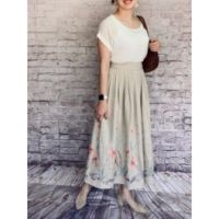 シルバーミントシュガー ボタニカル カラフルチュール刺しゅう フレアースカート