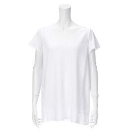 ●SHOPオリジナルサイズ:S,LL■身頃:ベーシックなデザインですが、前ネックラインと前両脇から後ろにかけての裾をシフォン素材で切り替え、軽やかな印象に仕上げました。