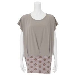 裾を異素材で切り替えたチュニックプルオーバーです。裾部分には花柄のメッシュ生地を使い、フェミニンな雰囲気を演出。