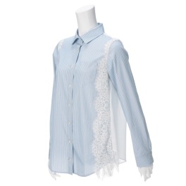 ■身頃:肌触りの良いコットンを100%使用。うっすらと柄が浮かび上がるようなシャドゥチェック風の生地とカットワークレースをアシンメトリーに切り替えた、ユニークでインパクトのある仕上がりです。