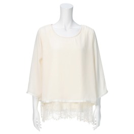 ■身頃:上品なレースを身頃に使用し、程良いシアーな透け感と落ち感のあるシフォン生地を上に重ねることで、当ブランドらしい世界観を表現。