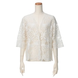 ■身頃:当ブランドで人気の、立体的なローズモティーフをほどこしたデザイン。ぷっくりとした立体感がかわいらしいローズモティーフを表現するために、天竺の編地の表側と裏側で編目の数を変え、糸の調子を整えな…